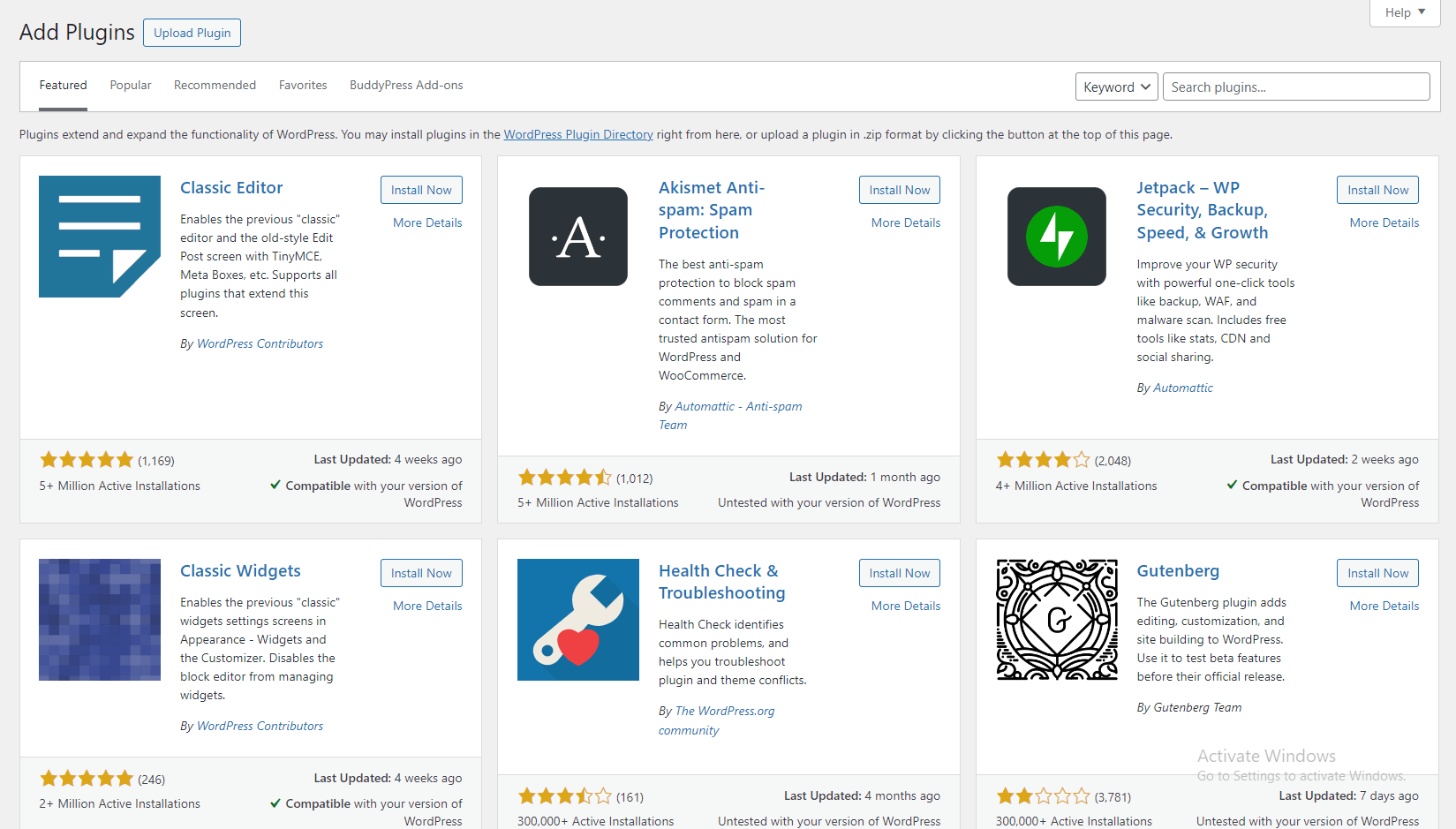 Step 5) From the Search Results page, scroll down to your chosen plugin and click the button marked Install Now. If you would like to learn more about your plugin, click the blue link marked More Details.