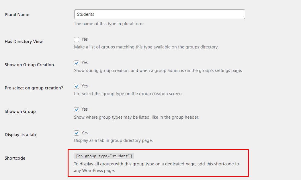 - navigate to Groups > group type, edit your previously created shortcode, and copy the shortcode.