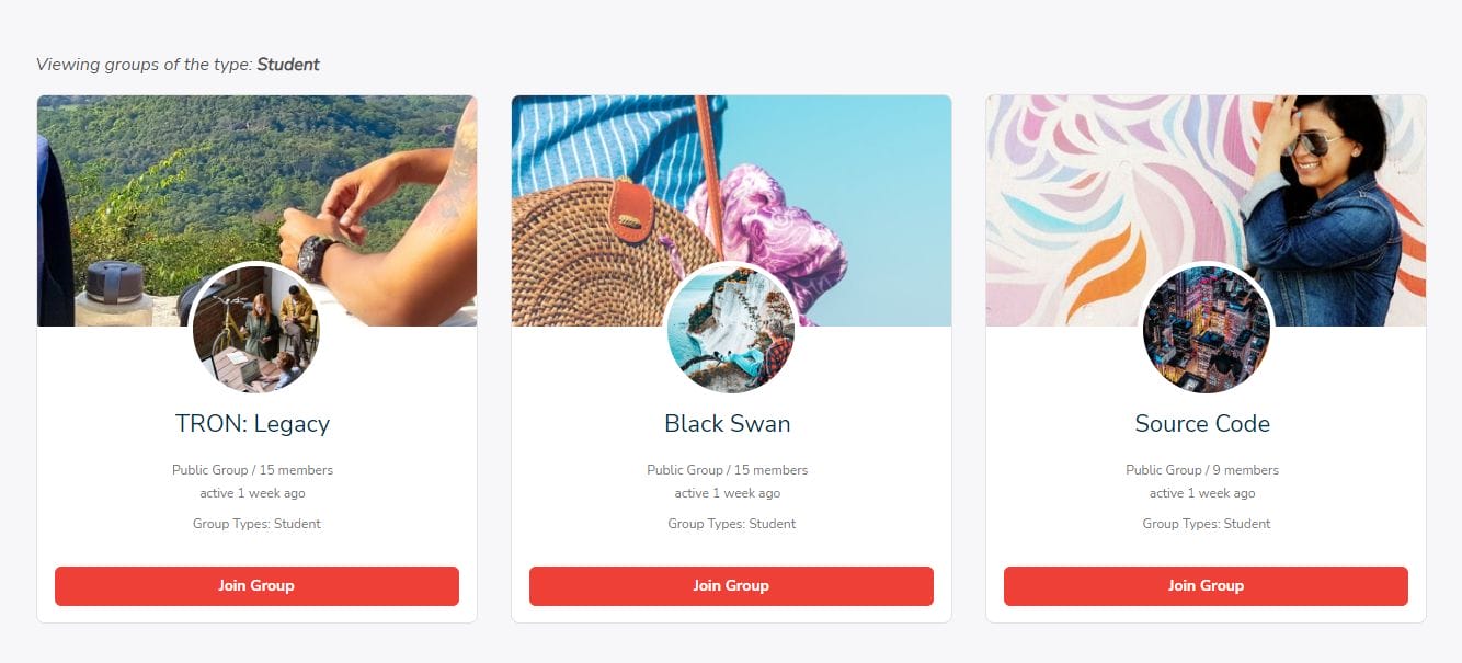 Now you can insert this on any WordPress page. Now when you will move to that specific WordPress page, you will see all the groups related to this specific group type.