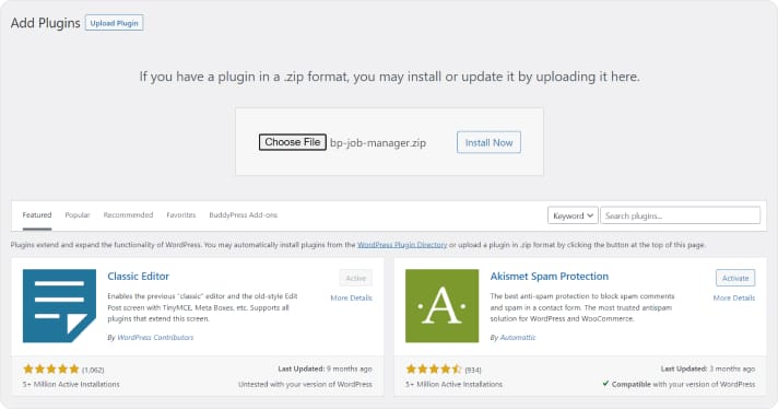 Step 5) After clicking the upload button, you can upload the plugin zip & install it.