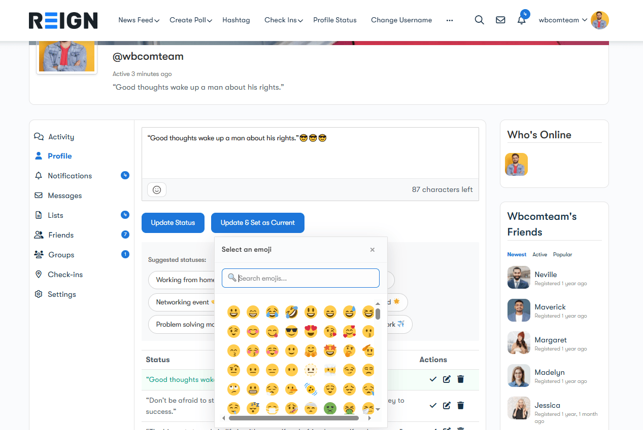 BuddyPress Status is a powerful WordPress plugin that enhances your BuddyPress community by allowing members to share status updates with emojis, feelings, and activities. It seamlessly integrates with your BuddyPress installation to provide a rich social experience.