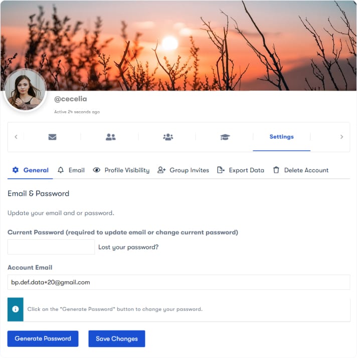 - Current Password fields need to enter the current password of the website to update the email and password.