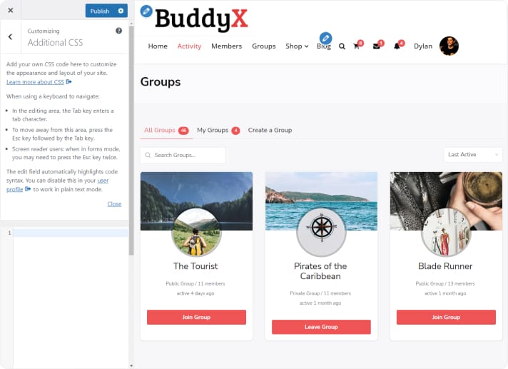 Navigate to Appearance >> Customizer section of your dashboard, scroll down to the bottom of the page and click Additional CSS. This will open an in-built tool that will allow you to add any CSS code.