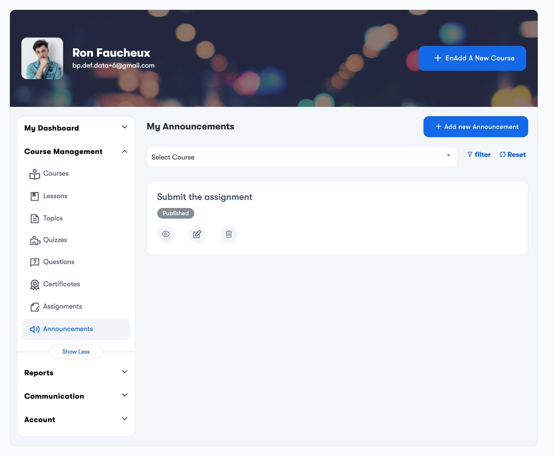 Select Course: Select the courses for which you want to create the announcement.