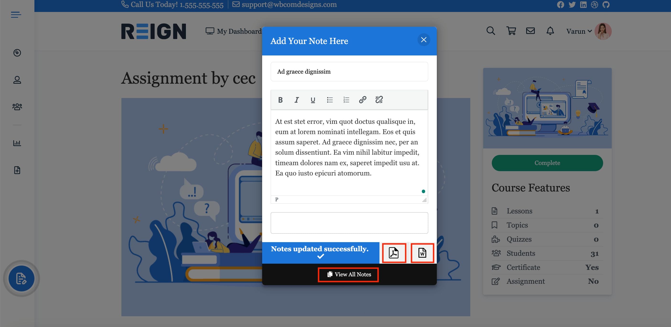 Adding notes is a very easy process for students – simply click on the notes icon, and a pop-up window will open. In this window, enter your notes’ title and commence writing.