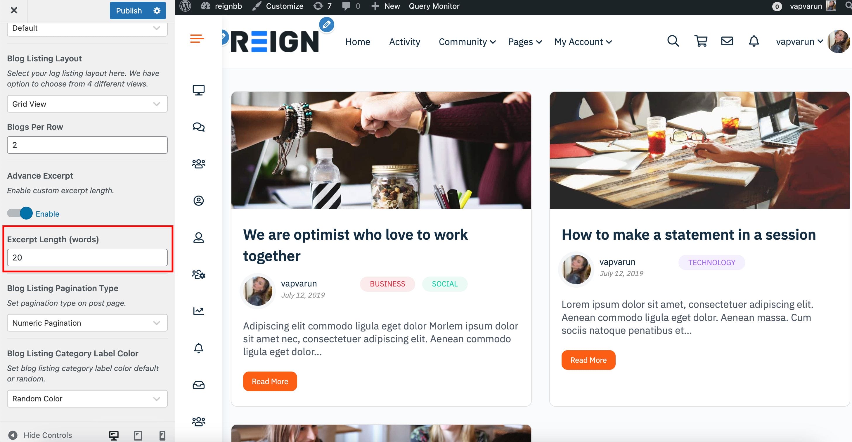- Excerpt Length (words) – Set the number of words you want to show as an excerpt.