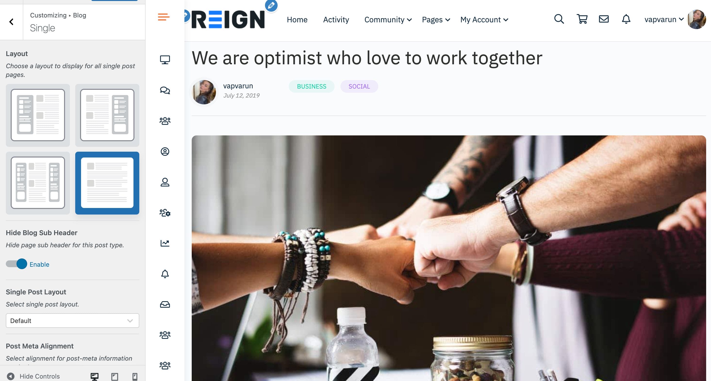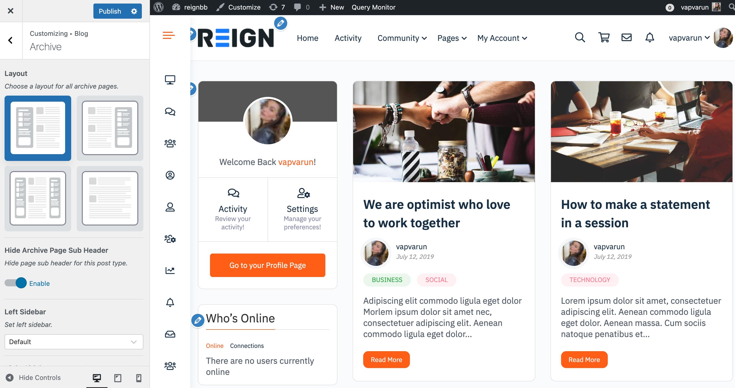 - Layout – This allows you to choose a layout for the Blog archive page.