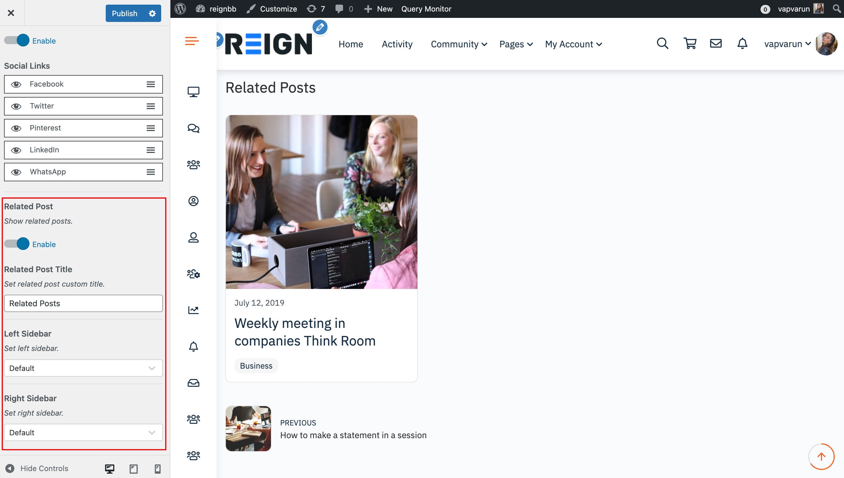 Dashboard >> Appearance >> Customize >> Layout Setting >> Blog.